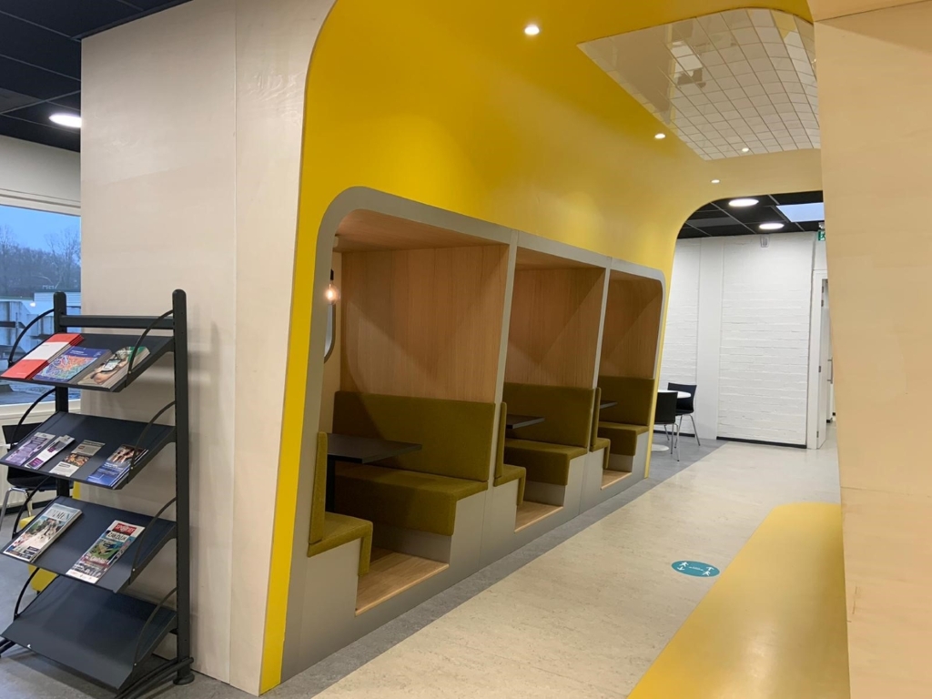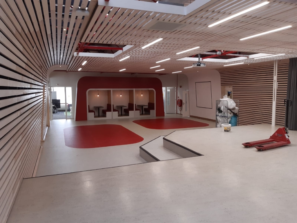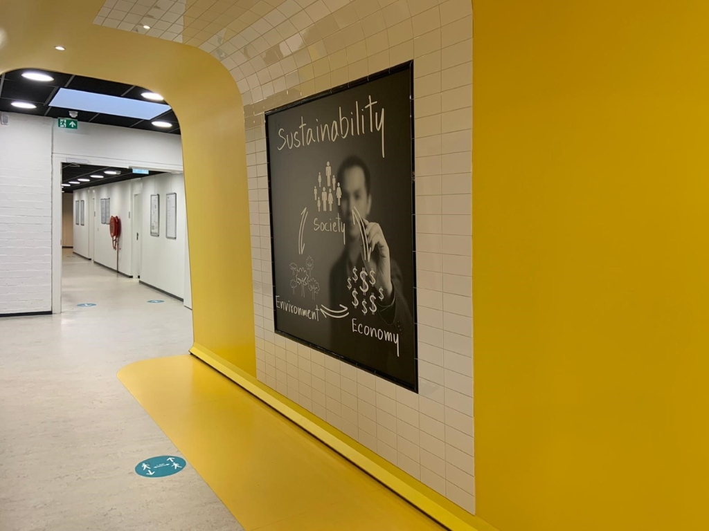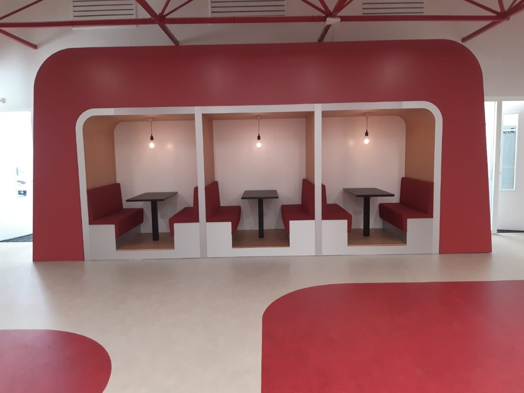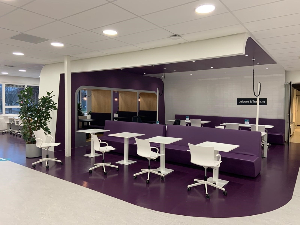Afgelopen jaar hebben wij voor NHL Stenden Hogeschool Emmen het schoolgebouw gefaseerd mogen verbouwen. NHL Stenden heeft de afgelopen jaren hard gewerkt om de onderwijsmethode aan te passen door studenten te laten samenwerken in ateliers. Deze ateliers hebben wij gecreëerd in de gemeenschappelijke ruimtes. Op deze manier kunnen de studenten zich in een openbare ruimte toch terugtrekken en in alle rust samenwerken.